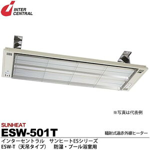 【インターセントラル】サンヒート輻射式遠赤外線ヒーターESWシリーズ(防湿・プール浴室用)ESW-T(天吊タイプ)防湿加工/ステンレス製/粉体塗装仕上サーモスタット別売防護ガード付100V/0.5kwESW-501T