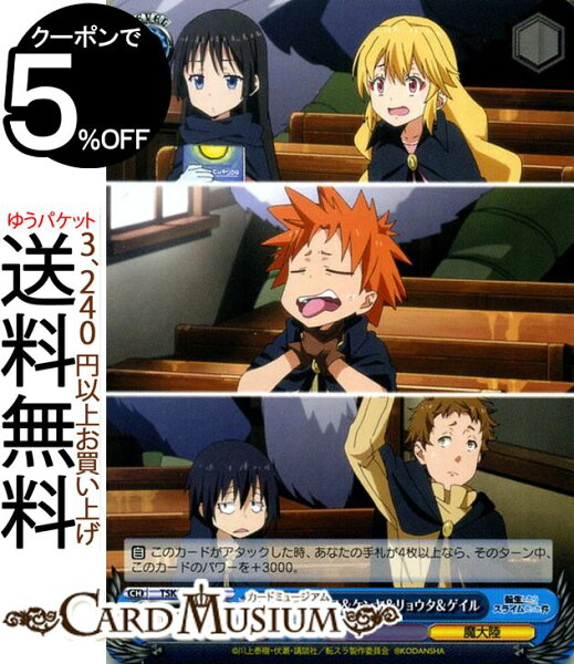 ヴァイスシュヴァルツ ブースターパック「転生したらスライムだった件」(TSKS70)収録 ●TSK/S70-091 ●カード名:クロエ&アリス&ケンヤ&リュウタ&ゲイル ●カテゴリー:キャラクター ●色:青 ●レベル:1 コスト:0 トリガー:0 ●パワー:4500 ソウル:1 ●特徴:《魔大陸》 ●テキスト 【自】 このカードがアタックした時、あなたの手札が4枚以上なら、そのターン中、このカードのパワーを+3000。